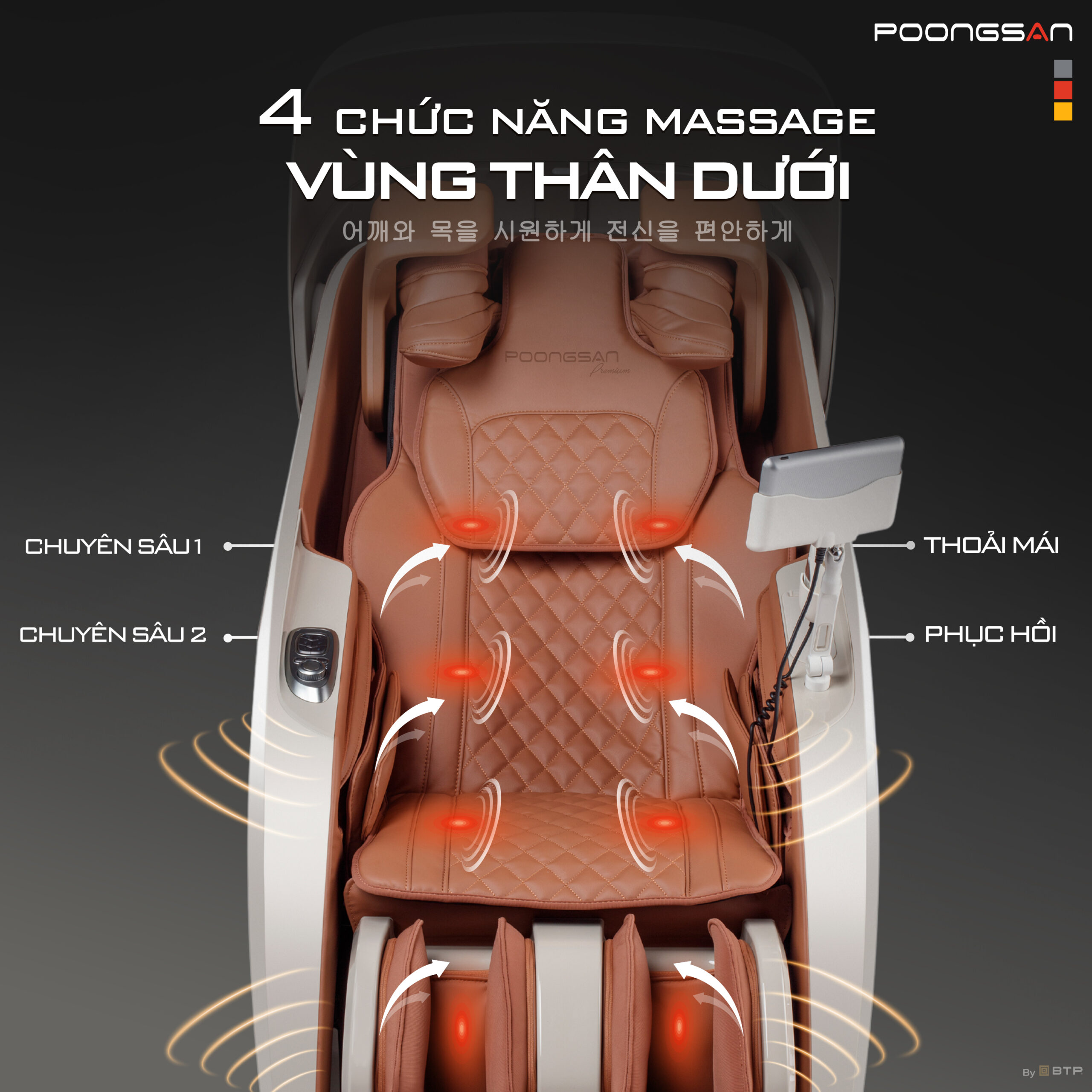 4 chức năng massage chuyên sâu vùng thân dưới bao gồm: